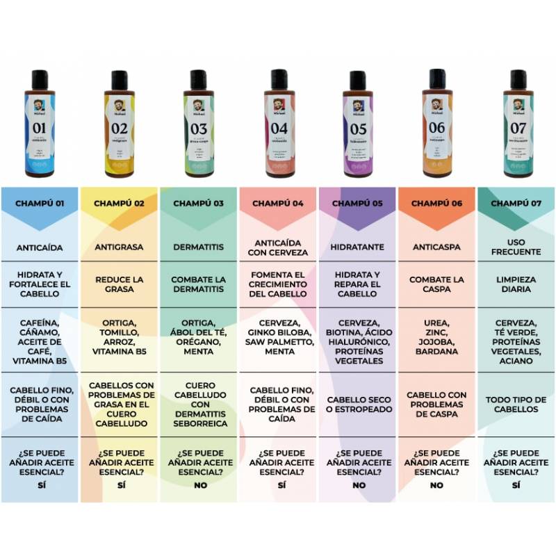 El champú grasa/caspa certificado NATURAL, BIO y VEGANO de Los Champús de Michael tiene un pH neutro y no contiene parabenos, siliconas o sulfatos.