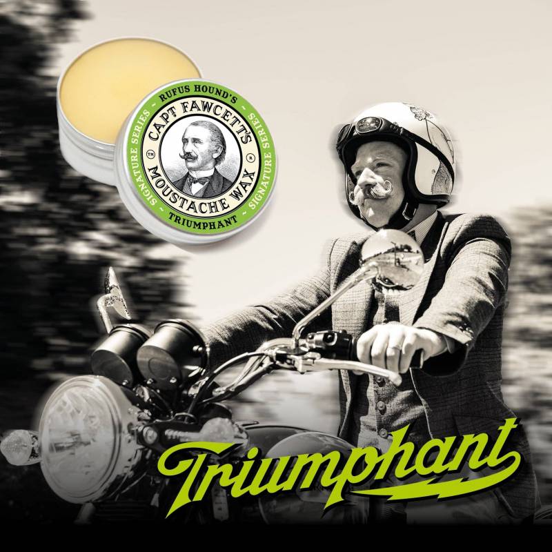 La colaboración de Capitán Fawcett con el actor y comediante Rufus Hound ha resultado en una espléndida gama de productos. ¡Te presentamos la Cera de Bigote "Triumphant"!